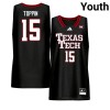 JT Toppin #15 Black Jersey | Red Raiders Youth University Basketball Premium Stitch