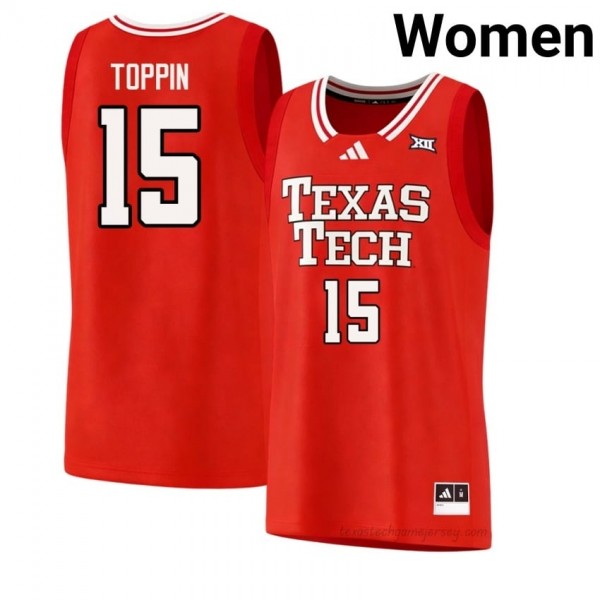 TTU #15 JT Toppin Red Women Basketball Jersey Authentic NCAA High School Fit 35543039